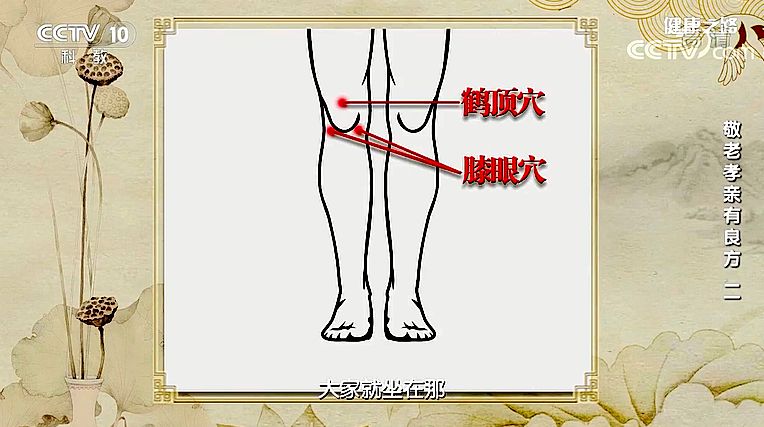 除了補腎壯骨方,專家表示,還可以按摩膝眼穴和鶴頂穴,可以經常按摩這兩個穴位,對膝、髕骨有好處。(資料來源:央視《健康之路》)