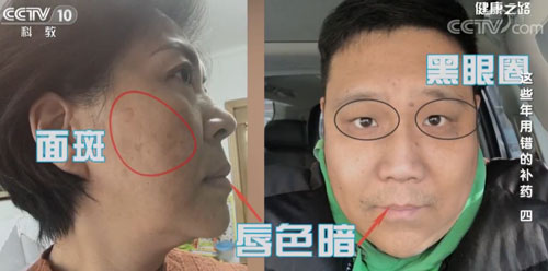 通過望診,發(fā)現(xiàn)測(cè)試者面部有斑、黑眼圈、嘴唇暗紫,說明測(cè)試者存在有形血瘀,適合吃三七粉。
