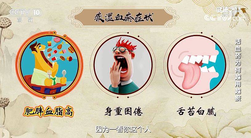 痰分為有形之痰和無形之痰,血液中的高血脂、高血糖、膽固醇等代謝產(chǎn)物就對應(yīng)著無形之痰,無形之痰增多,血液的黏稠度變高,運行不暢就會形成瘀血,即痰濕血瘀。
