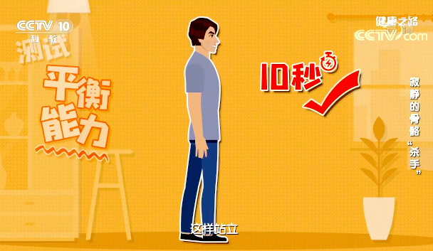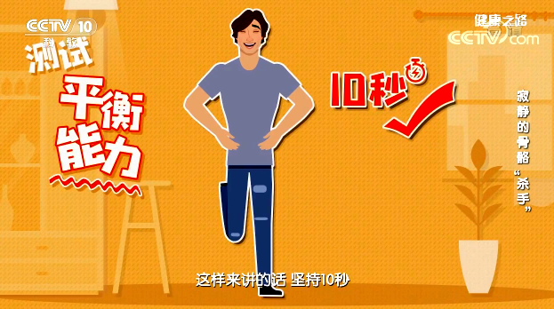 閉上眼睛,緩慢抬起一只腳,雙手叉腰,堅(jiān)持10秒。