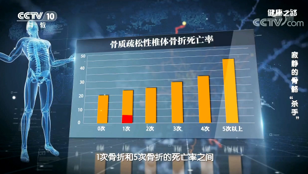 老年人的髖部骨折直接死亡率為6%-12%。除了骨折部位,骨質(zhì)疏松導(dǎo)致的死亡還跟骨折的次數(shù)有關(guān),隨著骨折次數(shù)的增加,死亡率也會(huì)隨之增高。