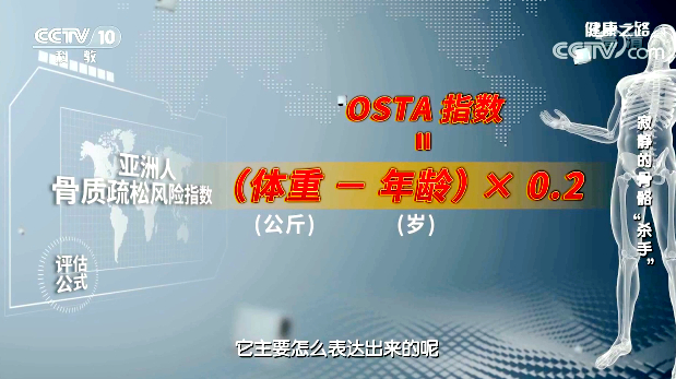 體重和骨質(zhì)疏松呈反比,人的年齡越大、體重越輕發(fā)生骨質(zhì)疏松的可能性越大。OSTA指數(shù)大于-1為低風(fēng)險(xiǎn),-1到-4之間為中風(fēng)險(xiǎn),小于-4為高風(fēng)險(xiǎn)。
