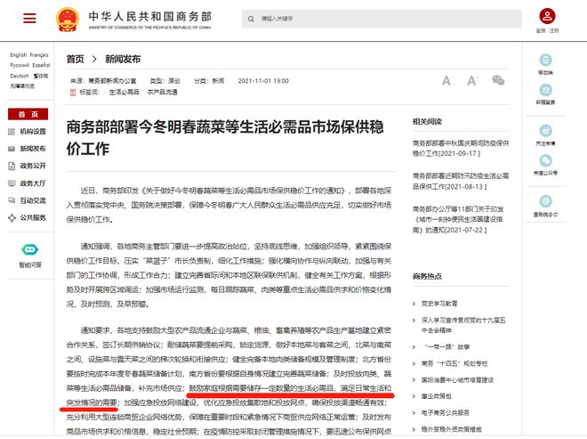 據(jù)悉,近日商務(wù)部印發(fā)的《關(guān)于做好今冬明春蔬菜等生活必需品市場保供穩(wěn)價工作的通知》中提到,“鼓勵家庭根據(jù)需要儲存一定數(shù)量的生活必需品,滿足日常生活和突發(fā)情況的需要”,正是這一句話引發(fā)了網(wǎng)友熱切討論。