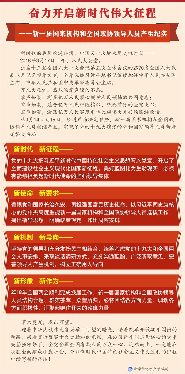 新華社北京3月19日電 題:奮力開啟新時代偉大征程——新一屆國家機構和全國政協領導人員產生紀實
