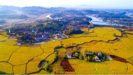 安徽省舒城縣棠樹鄉豐收的稻田、縱橫交錯的道路、錯落有致的村舍,構成一幅迷人的鄉村田園美景畫。近年來,當地積極發展生態旅游業,興建鄉村旅游通道,游客方便、村民增收,取得顯著成效。(圖片來源:新華網)