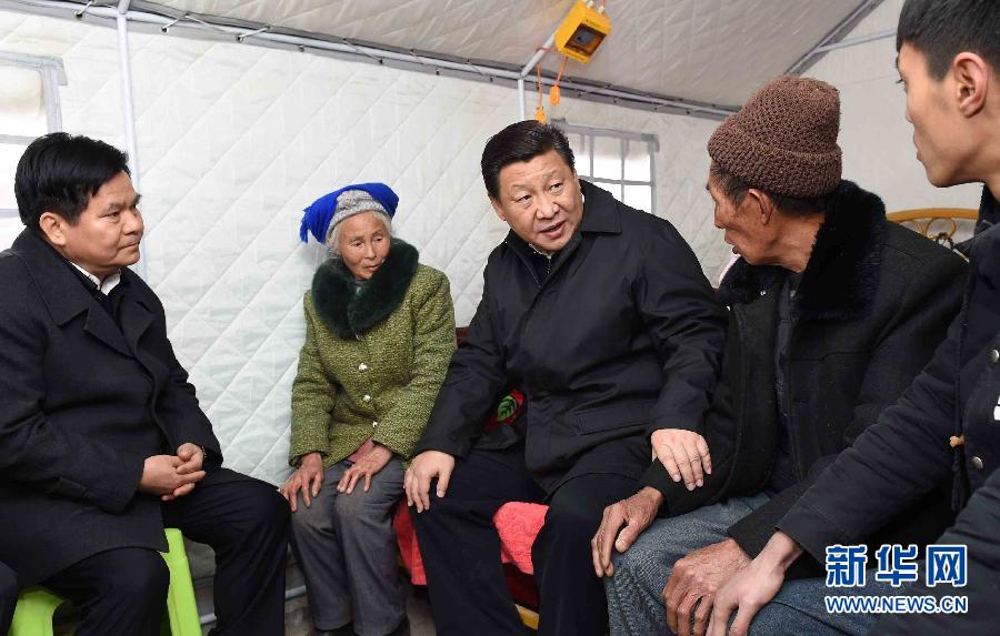 2015年1月19日至21日,中共中央總書記、國家主席、中央軍委主席習近平來到云南昭通、大理、昆明等地,看望魯甸地震災區干部群眾,深入企業、工地、鄉村考察,就災后恢復重建和經濟社會發展情況進行調研。這是1月19日,習近平來到魯甸縣小寨鎮甘家寨紅旗社區過渡安置點,看望受災群眾。 新華社記者 鞠鵬 攝