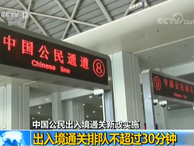 中國公民出入境通關新政實施 出入境通關排隊不超過30分鐘