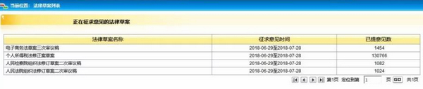 圖為截至28日16時左右,中國人大網法律草案征求意見管理系統顯示的《個人所得稅法修正案(草案)》征求意見情況。