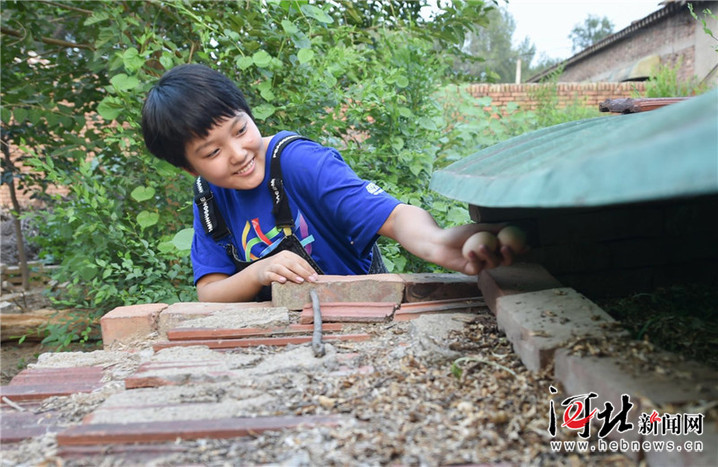 8月1日,王心儀在自家雞窩里掏雞蛋。 記者趙杰 霍艷恩攝