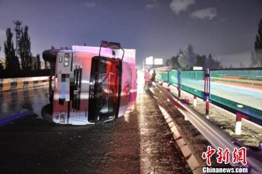 貨車(chē)高速側(cè)翻:上萬(wàn)斤雞蛋破損 蛋液覆蓋數(shù)百平米(圖)