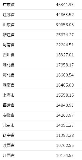 廣東繼續(xù)穩(wěn)居第一,上半年GDP達(dá)到46341.93億元;江蘇緊隨其后,上半年GDP達(dá)到44863.52億元。這兩省也是上半年“4萬億俱樂部”僅有的兩位成員。