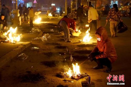 資料圖:沈陽市民在街邊燒紙。 中新社記者 孫昊聲 攝