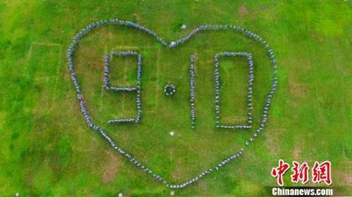 資料圖:300名大學生拼巨型“愛心”感恩教師。孟德龍攝