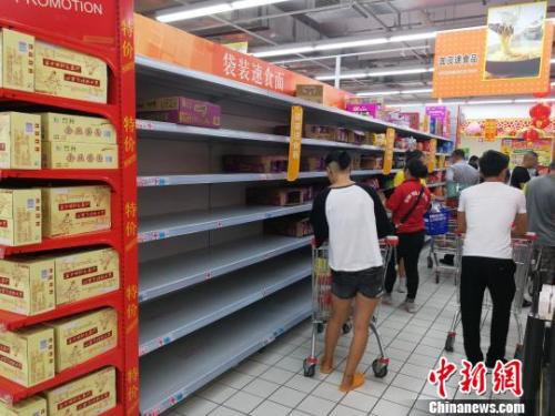 資料圖:超市的方便面貨架被一掃而空 翟李強 攝