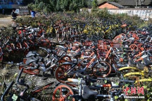 資料圖:某地共享單車“墳場”。中新社記者 任東 攝