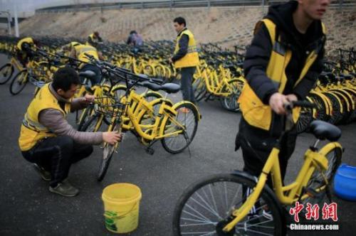 資料圖:某共享單車運維人員在執(zhí)行作業(yè)。中新網(wǎng)吳濤 攝