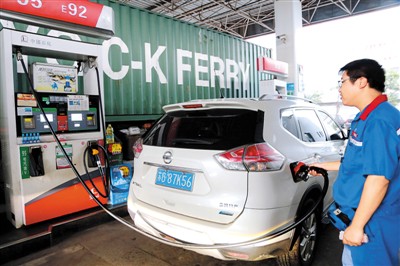 國家發(fā)展改革委發(fā)布消息,按照現(xiàn)行成品油價格形成機制,自2018年9月3日24時起,國內(nèi)汽油、柴油價格每噸分別上調(diào)180元和170元。乙醇汽油作為傳統(tǒng)汽油的替代品,有望成為市場上汽油產(chǎn)品的主流。圖為江蘇省連云港市一家加油站的工作人員給車輛加油。王 春攝(新華社發(fā))