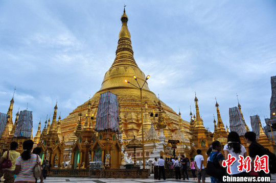 資料圖:游客參觀緬甸仰光大金塔。中新社發 任東 攝