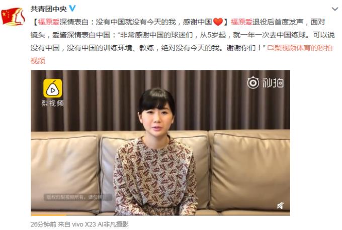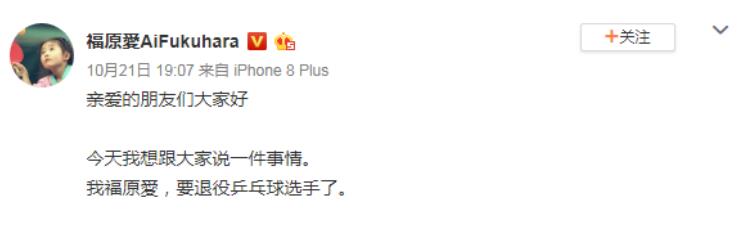 福原愛宣布退役后首次發聲,感謝中國及中國球迷