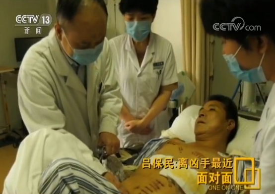其實,在與行兇者搏斗的過程中,呂保民已經被刺5刀,右側第三肋骨骨折并發開放性血氣胸,腹部開放性損傷,多側肌肉斷裂,傷情危重。他和被害人翟某被趕來的救護車一同送到醫院進行搶救,翟某因搶救無效死亡,呂保民經過搶救,脫離了生命危險。