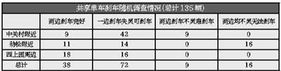 日前,一名男子在深圳騎行共享單車時,不幸從天橋墜亡。據初步測試,男子所騎共享單車剎車把手不靈敏存在安全隱患,目前事故原因正在調查中。不少在京騎行共享單車通勤的市民表示,有時也會遇到剎車失靈的情況。為此,北京青年報記者在北京多個區域對共享單車的剎車情況進行了調查。探訪發現,135輛共享單車有25輛車存在剎車不靈情況。多家共享單車公司表示,公司配置專門的運維人員,發現單車存在故障后,會統一進行回倉處理,確保用戶騎行安全。