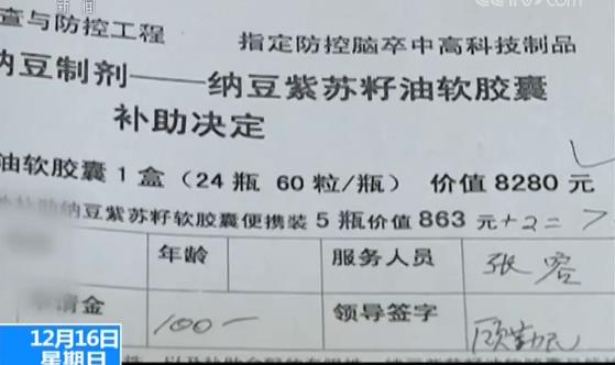 至此,整個非法推銷保健食品的套路已經逐漸清晰:第一步保健食品推銷者首先通過免費贈送獲取老年人個人信息,然后邀請老年人參與所謂健康講座,引出“腦卒中”的概念,接著組織頸動脈體檢,加深老人們的恐慌心理;在前三步準備階段完成之后,營銷人員就會邀請老年人參加所謂的專家巡診,夸大宣傳保健食品本不具有的溶栓功效,最后進行一對一問診,迫使徹底恐慌的老年人花高價購買這款納豆紫蘇籽油軟膠囊。