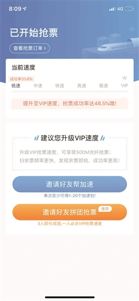 相比祝先生的贊,王女士感覺像是搶票軟件設置的噱頭,讓大家分享朋友圈給軟件做宣傳,她先后多次讓朋友為自己加速,感覺都要“飛起來了”,也沒搶到自己想要的車票。同時,上海的肖先生表示,自己多次使用該軟件后發現,“加錢或不加錢,只是在界面上顯示搶到票的概率數字會增加,其實并沒有感到有什么區別。”