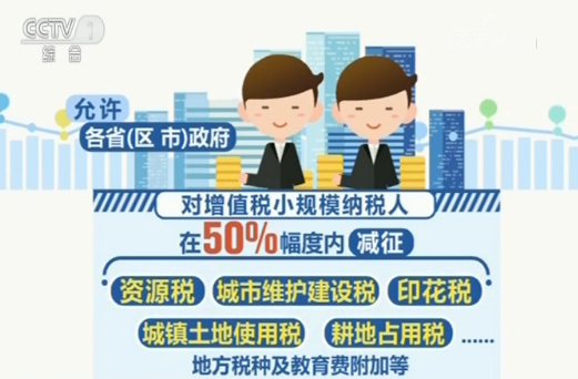 三是允許各省(區、市)政府對增值稅小規模納稅人,在50%幅度內減征資源稅、城市維護建設稅、印花稅、城鎮土地使用稅、耕地占用稅等地方稅種及教育費附加等。