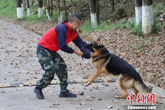資料圖:警犬在訓(xùn)練。 瞿宏倫 攝