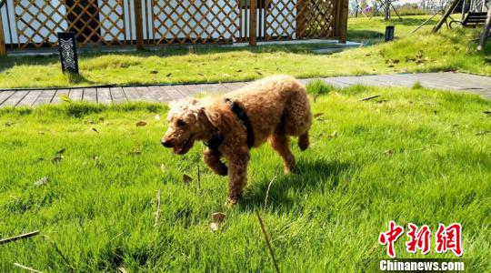 資料圖:游客牽著小狗在貴陽十里河灘濕地公園踏春。 瞿宏倫 攝