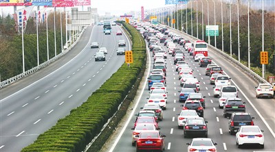 2月10日,多地迎來春運返程客流高峰。江蘇南通蘇通大橋北側(cè),大量車輛行駛在G15沈海高速上。許叢軍攝(新華社發(fā))