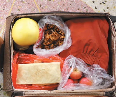 一個放滿了煎餅、過油菜等家鄉(xiāng)特產(chǎn)的行李箱。王齊勝攝(新華社發(fā))
