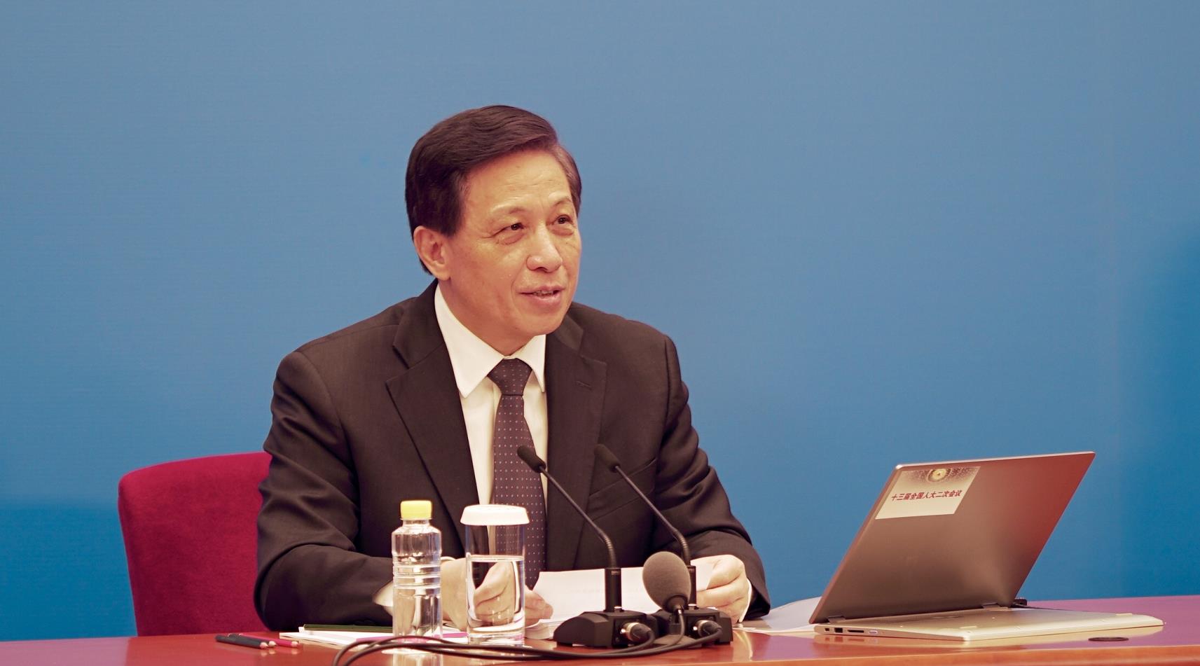 圖為大會發言人張業遂。(央視網 劉亮 攝)