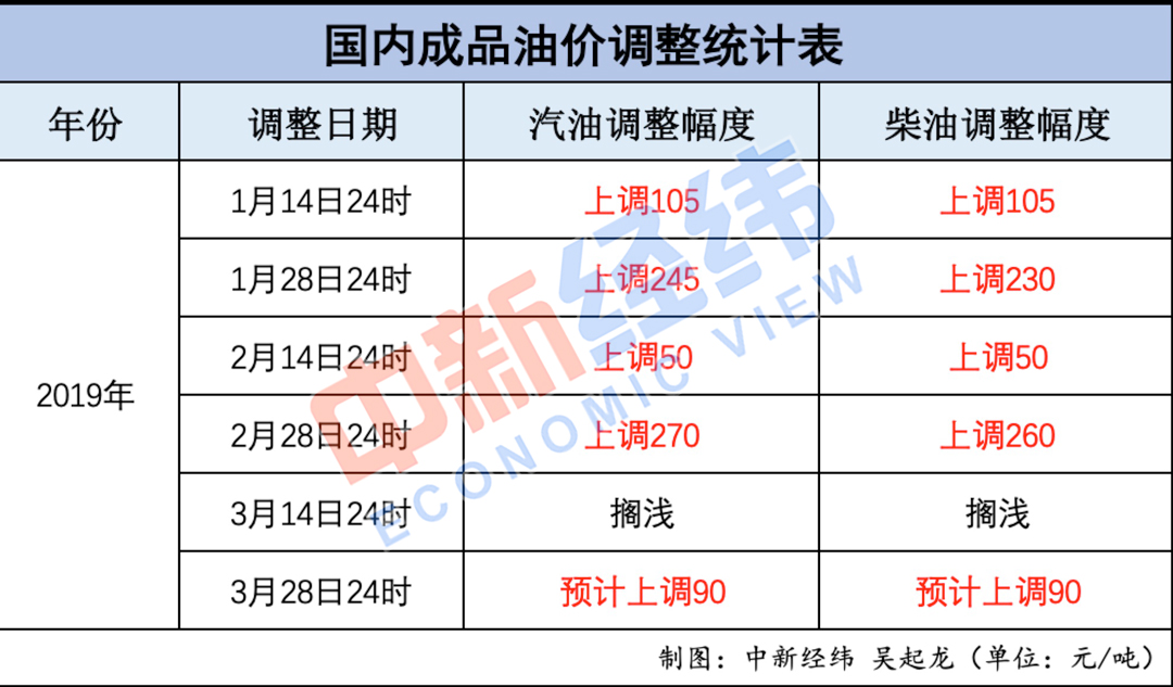 進入2019年,歐佩克(OPEC)開始落實減產計劃,油價逐漸出現恢復性上漲,1月初國際油價曾創(chuàng)下近十年來最長的連漲紀錄。截至目前,國內成品油價今年以來已連續(xù)上調四次、擱淺一次,汽油已累計上漲了670元/噸,柴油累計上漲了645元/噸。