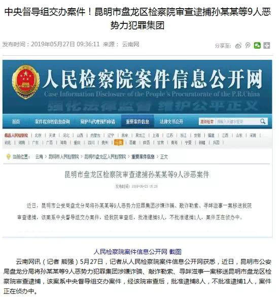 昆明市盤龍區(qū)檢察院審查逮捕孫某某等9人惡勢力犯罪集團(tuán)