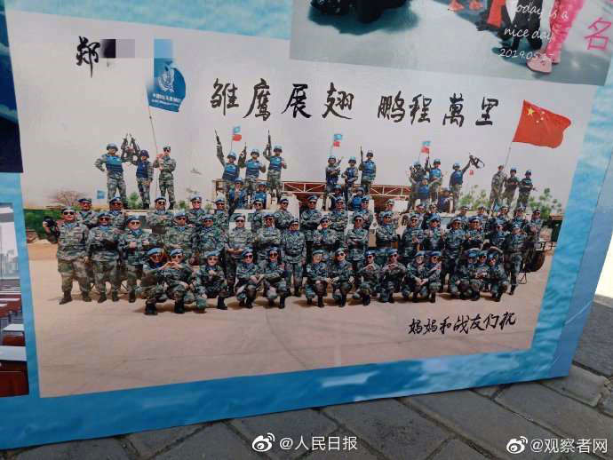 鄭同學(xué)的母親正在馬里執(zhí)行維和任務(wù)。臨近高考,她從遠(yuǎn)方發(fā)來了這張照片來鼓舞兒子。