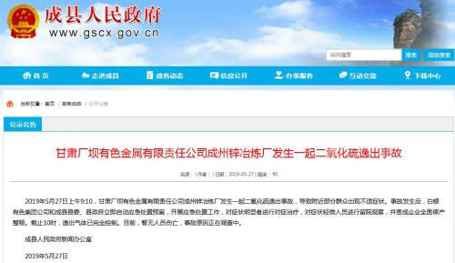 甘肅一工廠發(fā)生二氧化硫逸出事故 附近學(xué)校多名學(xué)生就醫(yī)