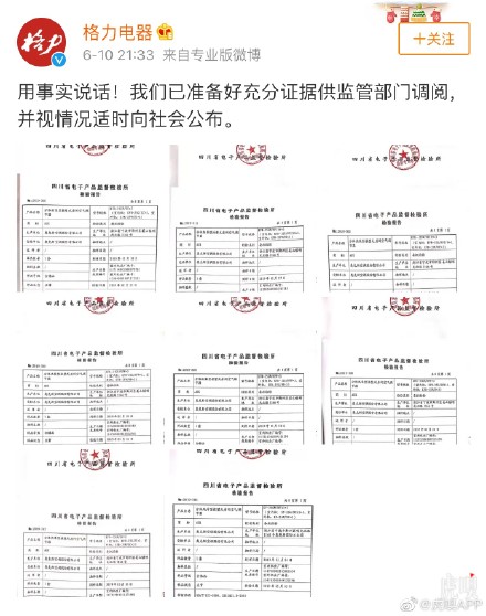 6月10日,針對奧克斯空調(diào)發(fā)布關(guān)于格力電器所謂舉報信的聲明,格力電器回應(yīng):用事實說話!我們已準(zhǔn)備好充分證據(jù)供監(jiān)管部門調(diào)閱,并視情況適時向社會公布。