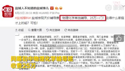 ——江蘇鹽城市教育局回應網曝“鹽城一暑期輔導班一門課25萬元?!?/p>