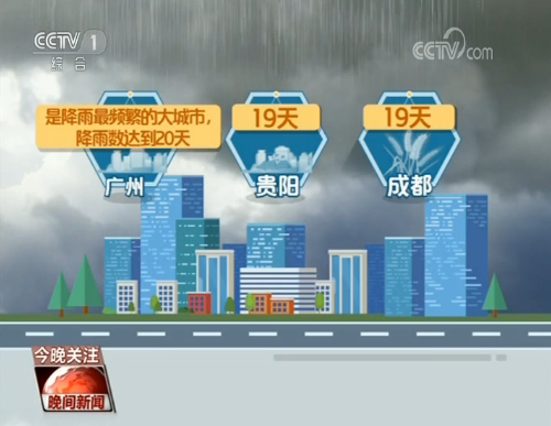 在整個6月份,南方有11地降雨日超過25天,其中最多的云南鎮康多達27天,也就是只有三天沒有降雨,正如俗語所說——“天無三日晴”。此外,半數以上南方省會級大城市降雨天數達到或超過15天,排名前三的分別為廣州,是降雨最頻繁的大城市,降雨數達到20天,貴陽和成都緊隨其后,都是19天。