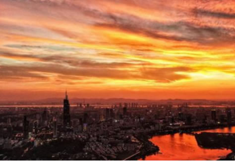●南京上空晚霞絢麗,放眼望去,城市“顏值爆表”。