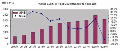 回顧這十年來的彩票市場,2010-2012年先經歷了兩位數的快速增長期,然后增幅逐步下降至個位數,在2019年上半年首次出現負增長。
