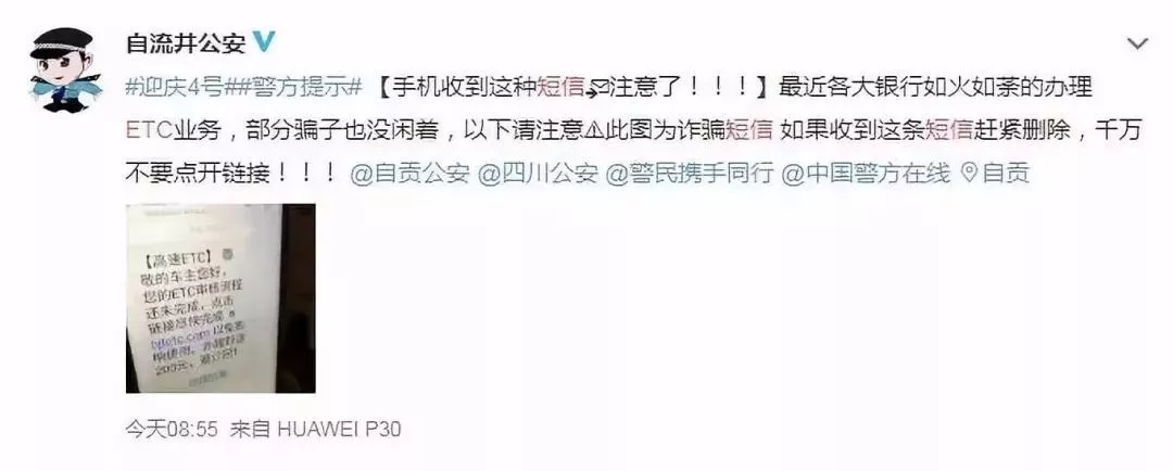 接到號(hào)稱高速ETC的短信