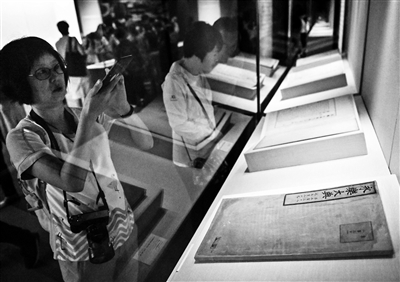 觀眾在展柜前觀看明代《永樂大典》 供圖/新華社