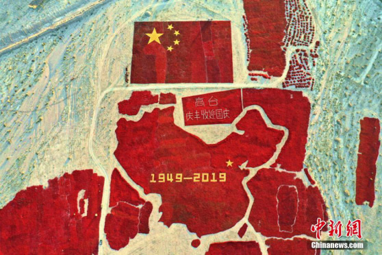 ●甘肅張掖戈壁灘上,當(dāng)?shù)剞r(nóng)民用辣椒和玉米拼起3萬(wàn)多平方米的巨型中國(guó)地圖和國(guó)旗,以此方式慶祝豐收,喜迎國(guó)慶。