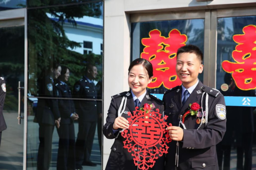 ●22日,同為“90后”的焦作民警張偉偉、洛陽(yáng)民警李蓮蓮舉行了大約40分鐘的婚禮,就又匆匆返回了工作崗位。