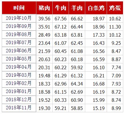 豬肉、牛肉、羊肉、白條雞、雞蛋均價(jià)(元/公斤) 來源:農(nóng)業(yè)農(nóng)村部官網(wǎng)截圖