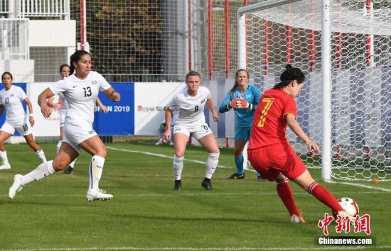 10月21日,第七屆世界軍人運(yùn)動會女足小組賽在武漢舉行。中國八一女足(紅衣)4:0輕取美國女足,以小組第一名的成績晉級。中新社記者 安源 攝