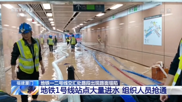 廈門地鐵1號線站點大量進水 組織人員搶通