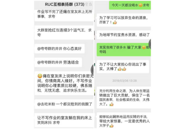 小應(yīng)認(rèn)為,這一部分是出于對同學(xué)的關(guān)懷,另一部分則可以理解為一種競爭。“因為很多時候不是你一個人在夸,這時候你就會和別人去較量,他這句夸得有沒有我有意思,有沒有我精妙,所以會絞盡腦汁地想怎么夸。”